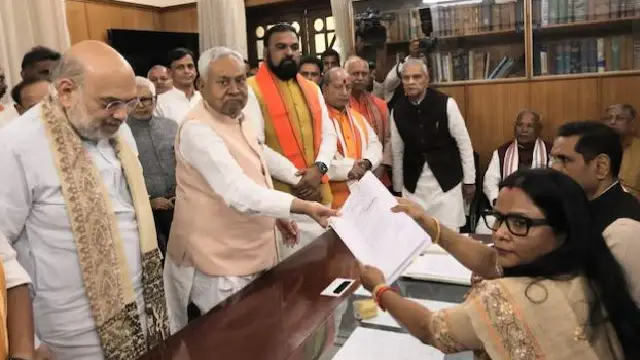 Accompanied by Union Home Minister Amit Shah, Deputy Chief Minister Samrat Chaudhary and other National Democratic Alliance (NDA) candidates, Nitish Kumar filed his nomination at the state Assembly.